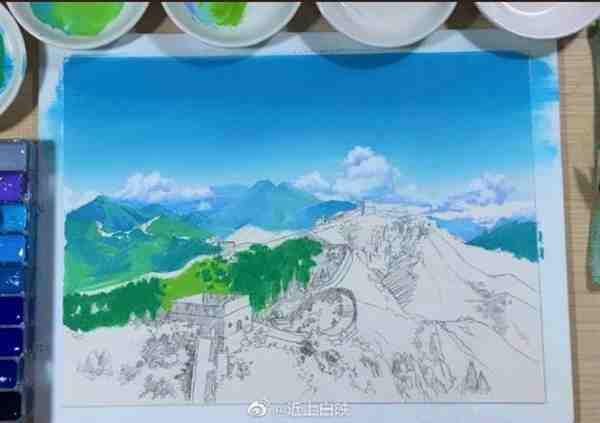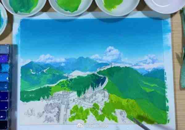 这是一位来着微博博主的水彩作品教程,不透明水彩《中国地理系列》创作开始,第一站:万里长城。作者是想把中国的大好河山用治愈风表现出来。下面让我们一起来学习一下这位来着博主的水彩作品教程吧!