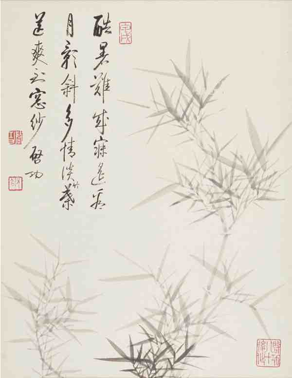 释文:酷暑难成寐,遥看月影斜。多情淡竹叶,送爽到窗纱。启功。