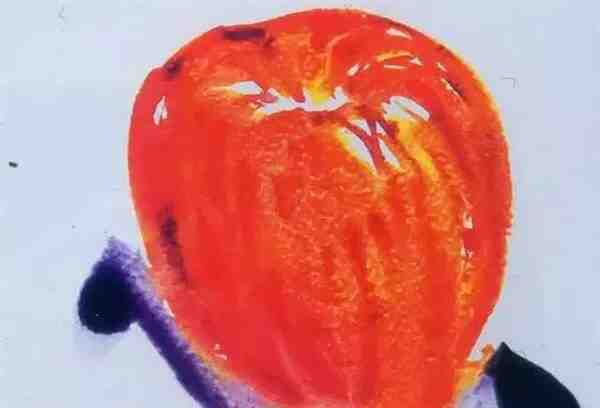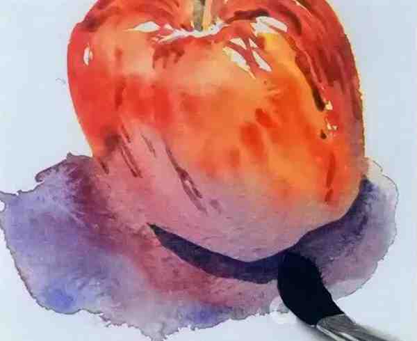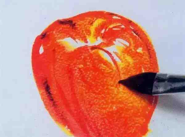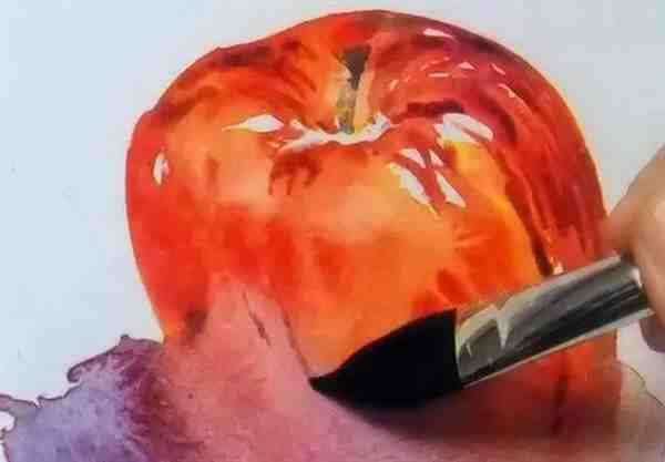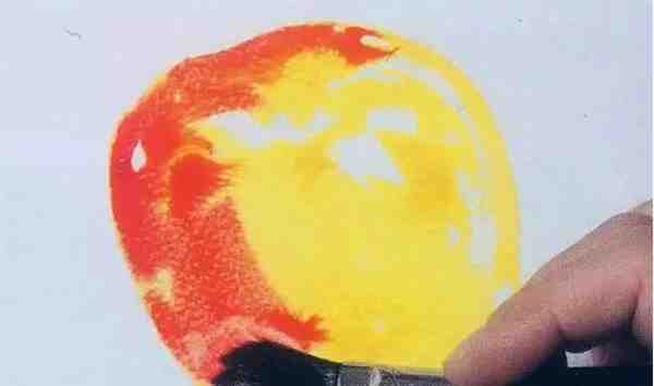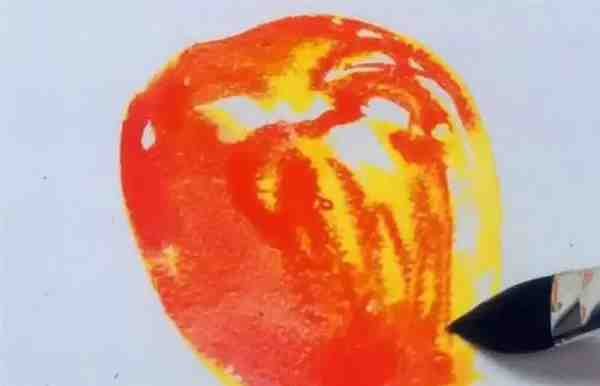 2、底层的黄色干燥之前涂上红色。苹果色应使用紫红色等稍带紫的红色来涂。