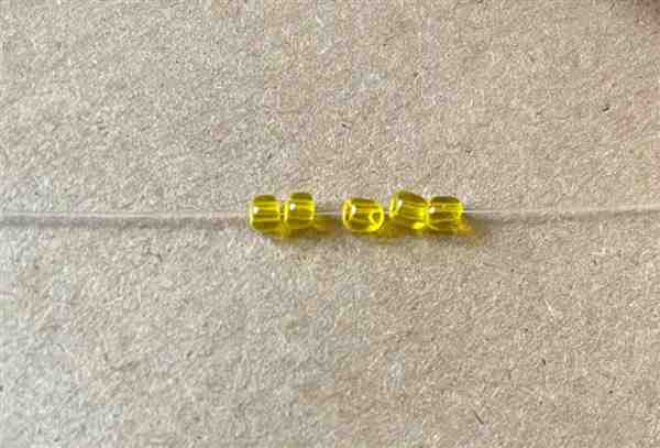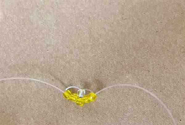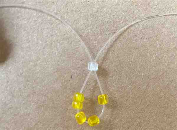 Step 3.两端分别穿入第1、2颗珠子和第4、5颗珠内。