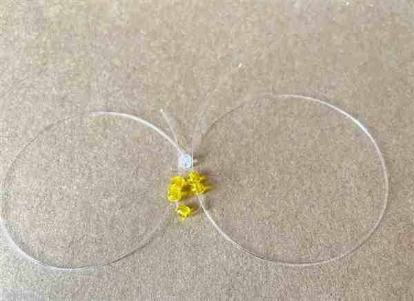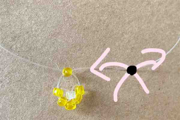 Step 6.用力拉紧线头两段即可,小花串珠完成了。