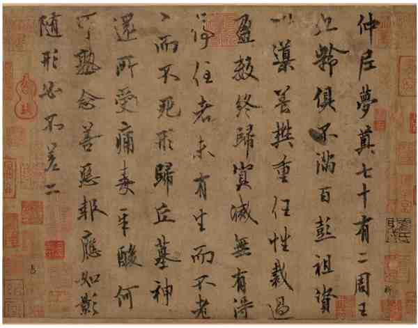 《仲尼梦奠帖》书法笔力苍劲古朴,用墨淡而不浓,以秃笔疾书,转折自如,无一笔不妥,无一笔凝滞,上下脉络映带清晰,结构稳重沉实,运笔从容,气韵流畅,体方而笔圆,妩媚而刚劲,为欧阳询晚年所书,清劲绝尘,诚属稀世之珍。它代表了欧阳询行书成就的顶峰,被后世列为“中华十大传世名帖之一”。