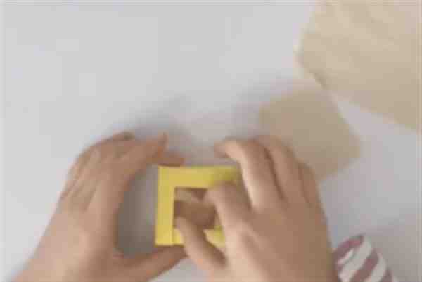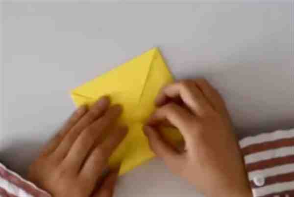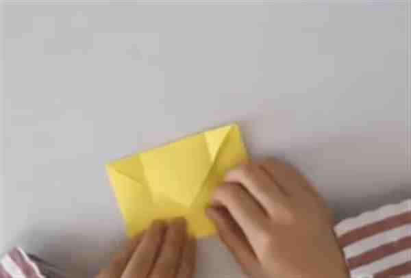 2.将两边向中心折展开,另外两边也向中心折展开,展开1/4的大三角形,折出一个小三角形,向内折2次。将两边展开组合。
