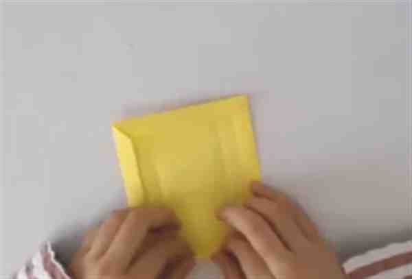 1、取一张正方形纸,对折展开,再次对折展开,分为四个小正方形,把四个角向中心折形成小正方形。