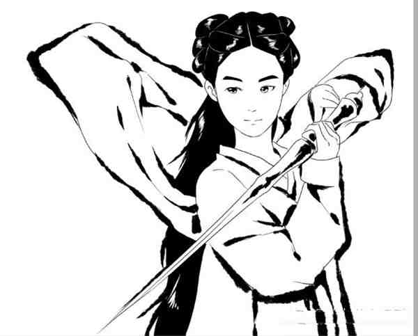 画出她的标志剑,霸气的拿剑手