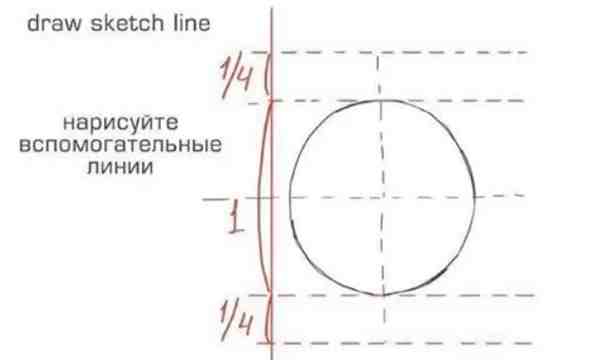 2、根据需要,将圆划分为四个区域,上下各占四分之一,中间占一等份,注意沿着虚线绘制。