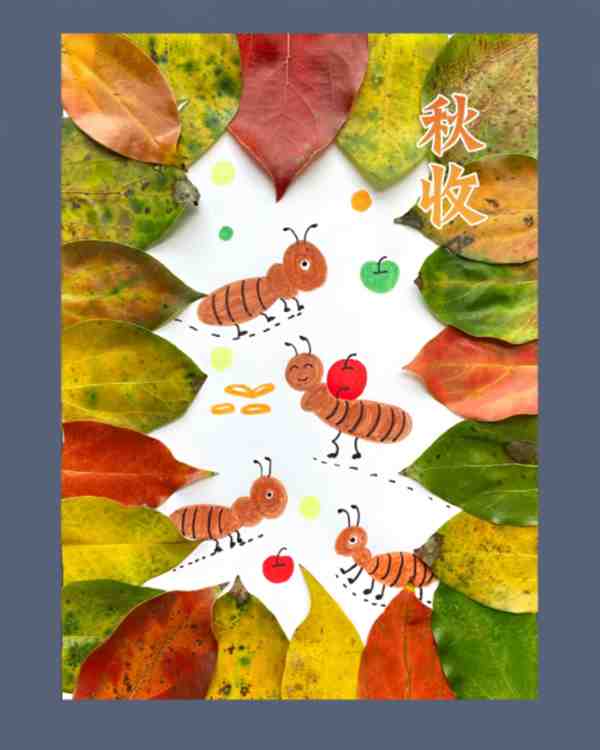 用胶水将树叶粘贴在纸上,一片片叠加,拼接,创造出层次感。樟树的叶子成了大树的枝干,火红的枫叶成了翩翩起舞的蝴蝶,黄金的银杏叶成了秋天的麦田。