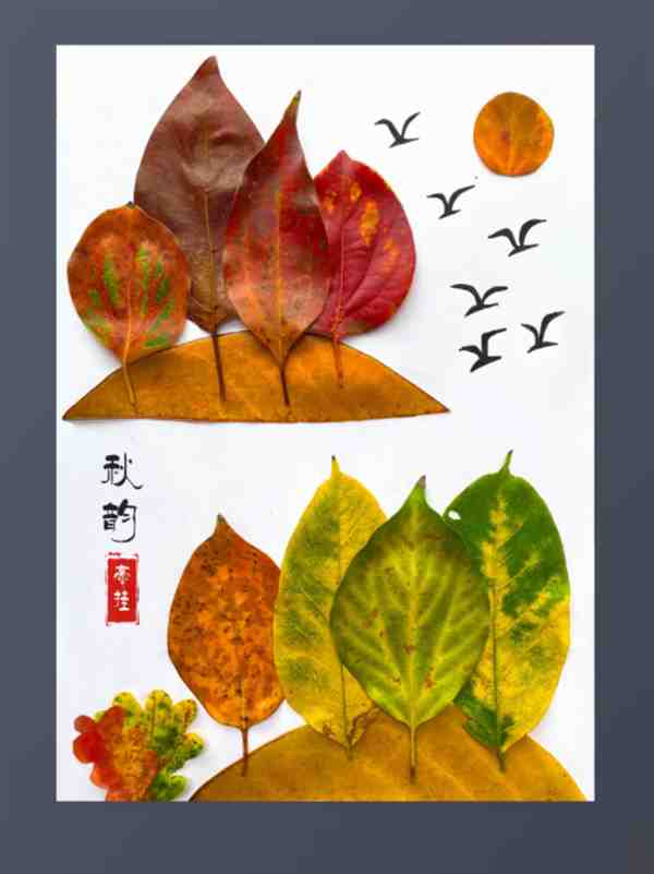 在秋天的尾声,落叶如舞者般悠然飘落,为大地铺上了一层金黄的地毯。拾起几片树叶,决定将它们变成手中的艺术品。用树叶做手工贴画,是对秋天的独特告别。