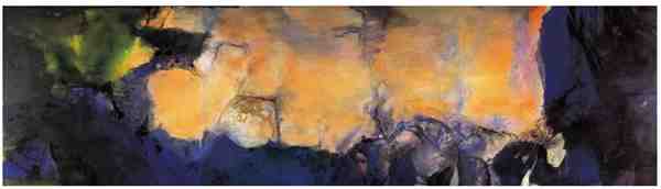 这幅画作于1985年,尺寸巨大,长10米,宽2.8米,是赵无极的巨幅油画作品之一。画面上运用了赵无极独特的油画技法,将中国水墨画的意境与西方油画的表现形式相结合,呈现出一种独特的艺术效果。
