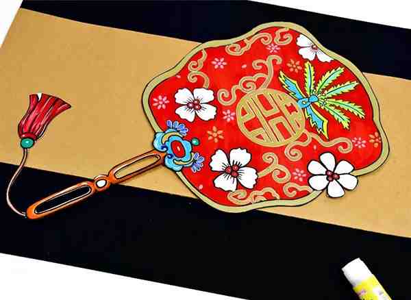 使用记号笔描绘出团扇的轮廓造型。