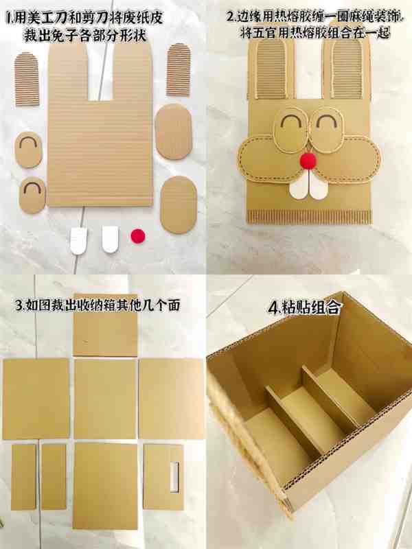 废纸箱做创意手工(小兔收纳箱)教程