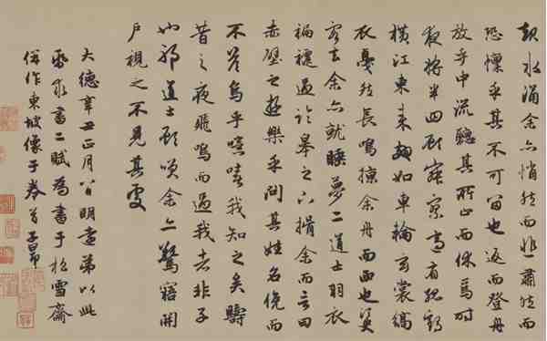赵孟頫博学多才,能诗善文,懂经济,工书法,精绘艺,擅金石,通律吕,解鉴赏。尤其以书法和绘画成就最高。在绘画上,他开创元代新画风,被称为“元人冠冕”;赵孟頫亦善篆、隶、真、行、草书,尤以楷、行书著称于世。其书风遒媚、秀逸,结体严整、笔法圆熟,创“赵体”书,与欧阳询、颜真卿、柳公权并称“楷书四大家”。