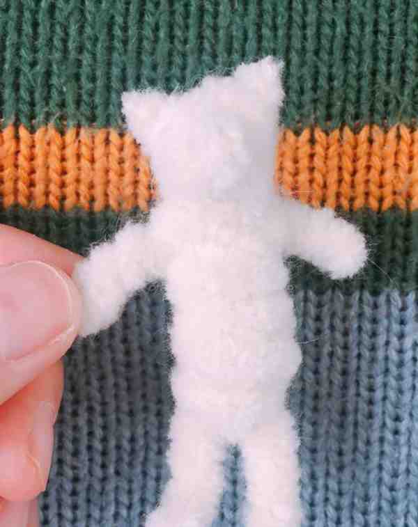 第12步:扭身体(这里耳朵修剪了一下,使耳朵更尖)。