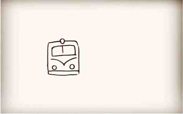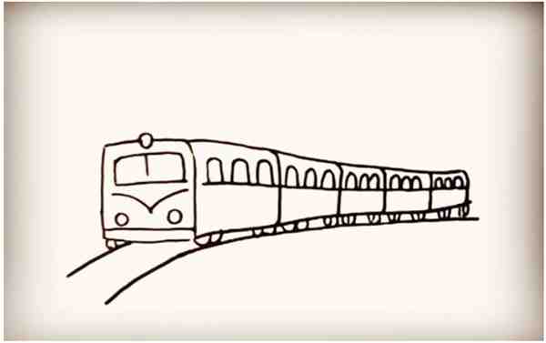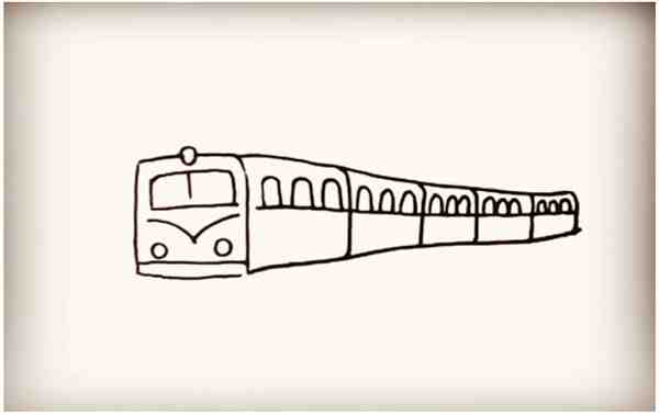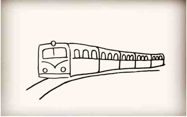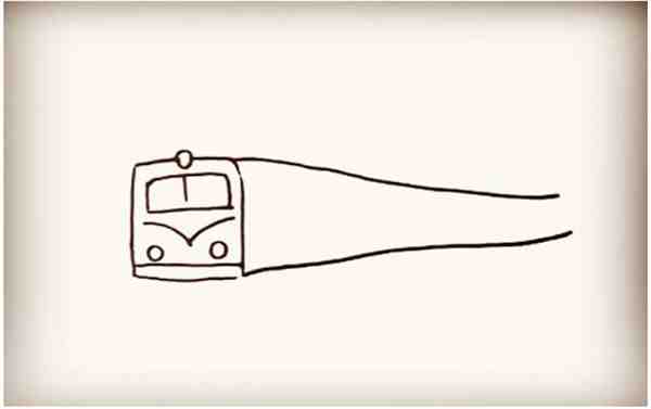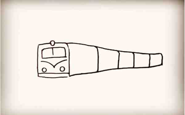 第三步:接着画出火车的车身,越往后边画线距越窄。