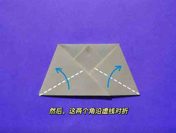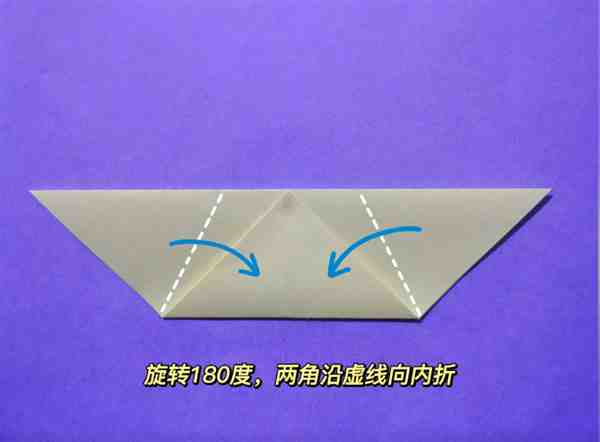 Step 6 : 旋转180度,两角沿虚线向内折。