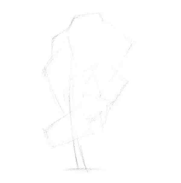 1、首先画出树干部分,接着勾勒树木整体的轮廓。