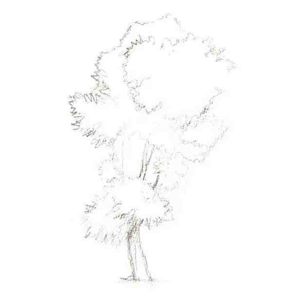 2、树木整体的结构形成后,在擦去多余辅助线的同时,将阴暗面加以区分。