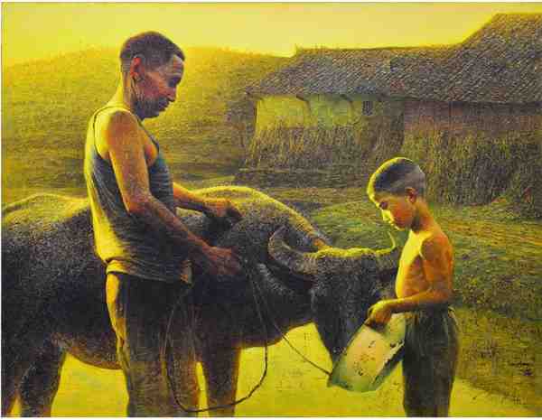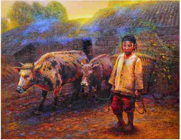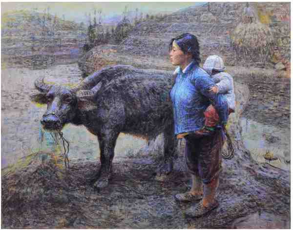 罗中立的个人特色十分鲜明。他擅长以细腻入微的笔触,捕捉大自然的神韵和人物内心的情感。他的画作中,山川、草木、人物都仿佛有了生命,呼之欲出。这种对细节的极致追求,使得他的作品具有极高的艺术魅力,让人百看不厌。