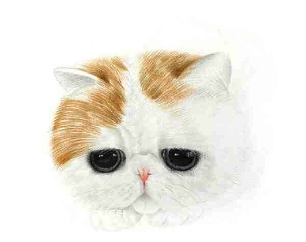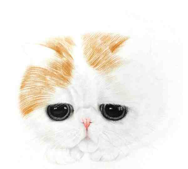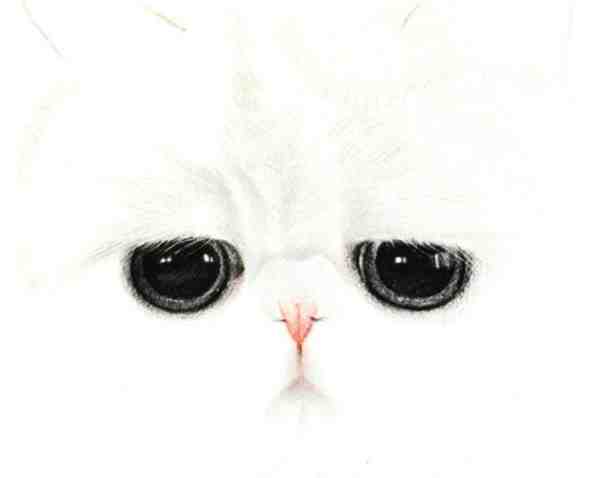 五、彩铅画动物教程:最后我们来看一下画好的整体猫咪脸部的彩铅画,这里需要注意脸部毛发的绘画需要用笔芯较细的彩铅笔,灰色和白色的彩铅笔是运用的最多的颜色,画的时候要注意毛发的分部,注意彩铅笔颜色的分部。
