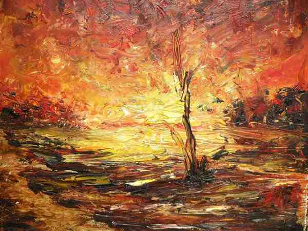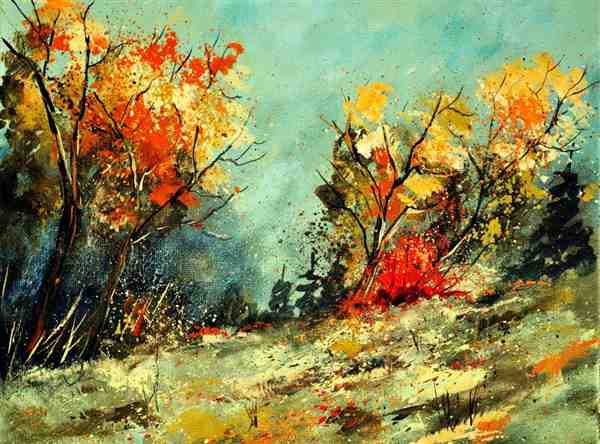 画家手绘秋意深浓的美丽风景图片