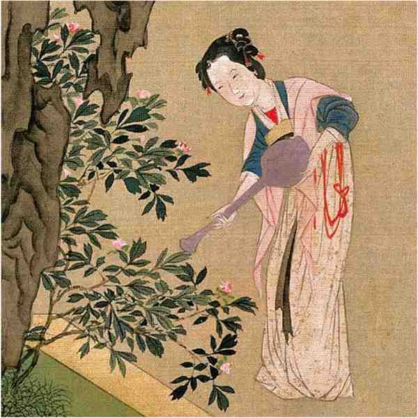 值得一提的是,仇英在画作中巧妙地运用了“三白法”来描绘仕女的面色。以白粉提额、鼻以及下颏,再施朱唇,使得人物的面色更加鲜活、生动。这种细腻的画法与画中的绫罗绸缎、珠光宝气相得益彰,让人不禁为之倾倒。