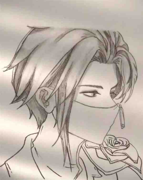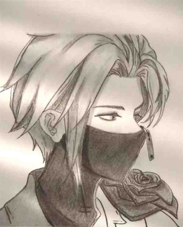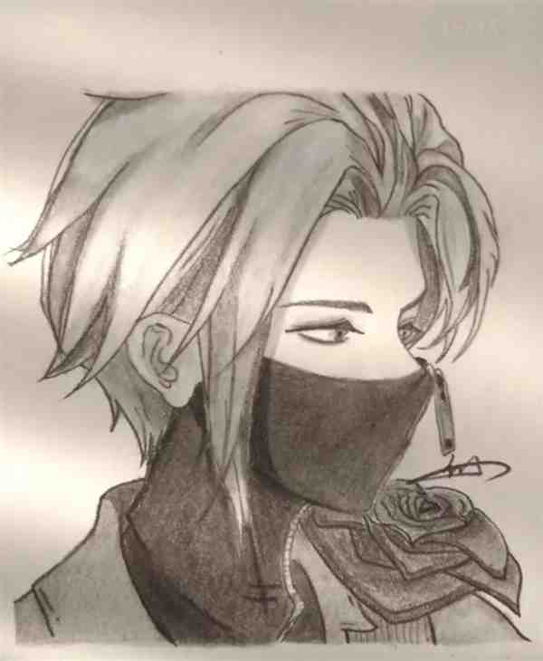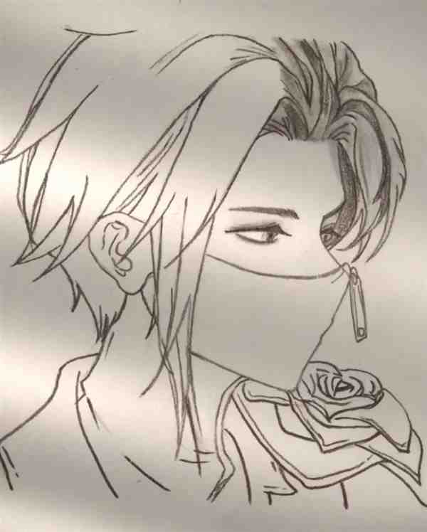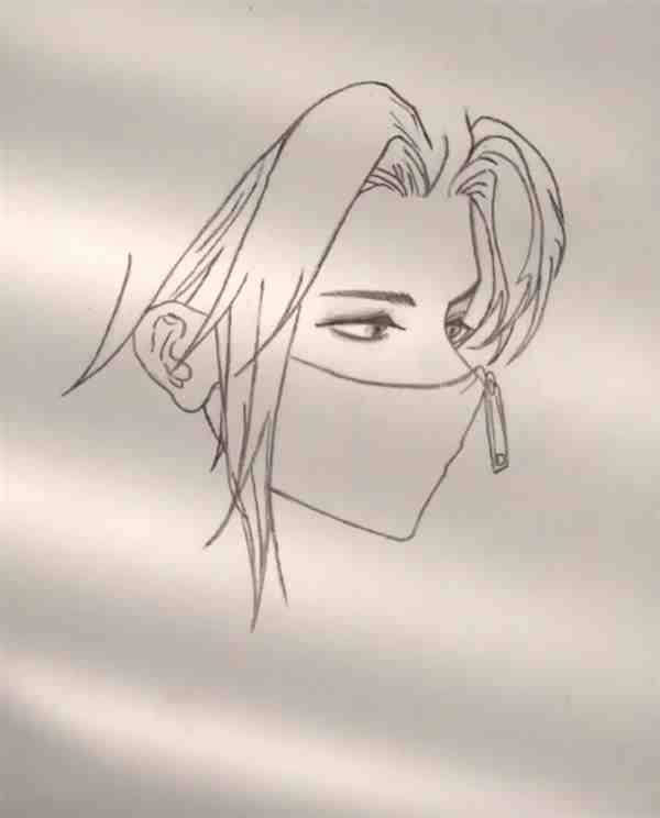 步骤3.细化面部特征:根据兰陵王在游戏中的设计,画出他的眼睛、鼻子和嘴巴。特别要注意表现出他的眼神,这是展现他性格的关键。