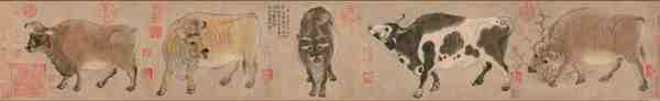 《五牛图》是唐朝韩滉创作的黄麻纸本设色画,又名《唐韩滉五牛图》,该作品现藏于北京故宫博物院。