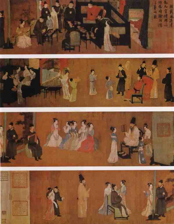 《韩熙载夜宴图》是五代十国时期南唐画家顾闳中的绘画作品,现存宋摹本,绢本设色,现藏于北京故宫博物院。