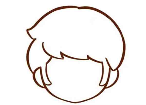 2、然后我们来加上刘海和鬓角,小男孩的发型就出来了。记得要留出画耳朵的位置哦!