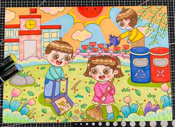 劳动简单又漂亮的画六年级