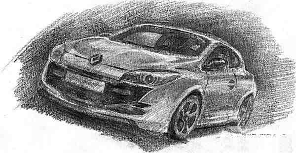 给车头灯画上基本色调,然后在上面修饰车灯的结构。轿车玻璃的画法,先画车内深色的背景,与一般的玻璃素描是一样的道理。仔细地完善车轮的结构及质感的表现。画出汽车的阴影和背景,更好地衬托轿车的造型。