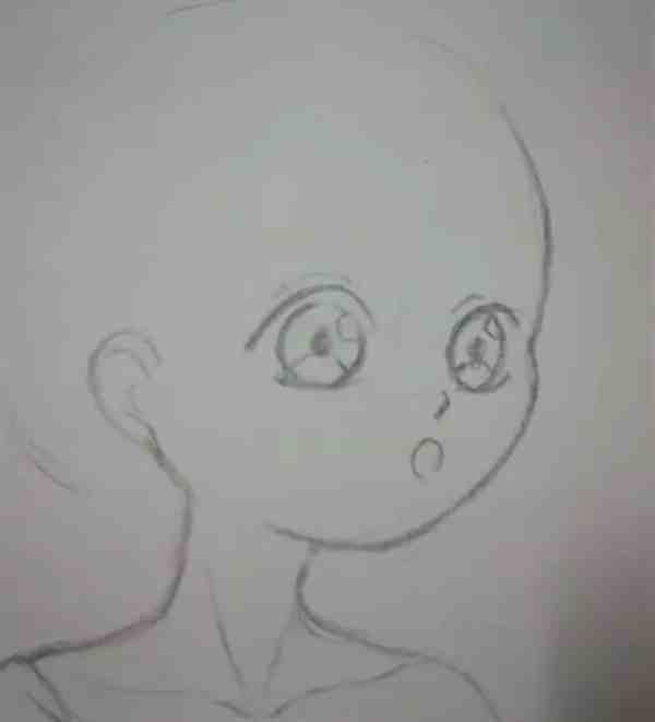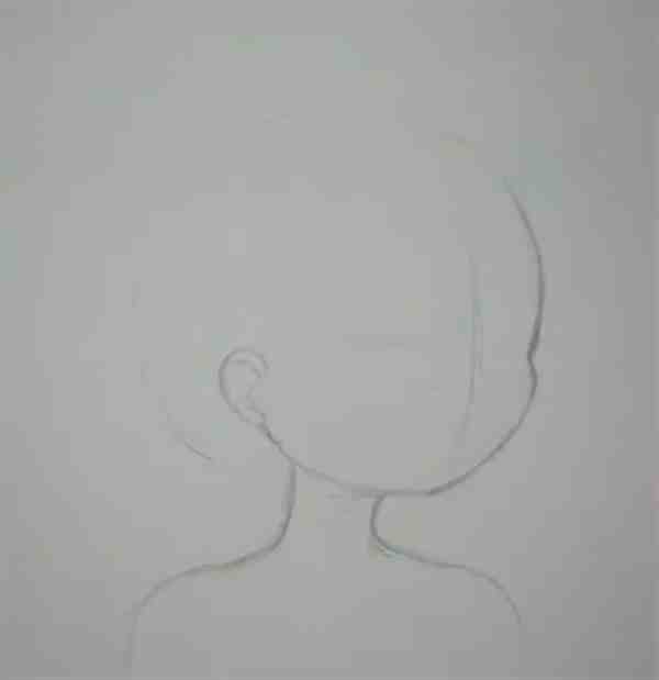 再然后我们顺着轮廓画出耳朵,并轻轻地画出脖子和肩膀。