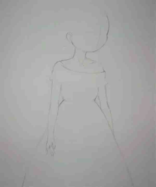 之后再用简单的线条概括出连衣裙轮廓,画出手臂和双手。