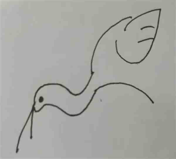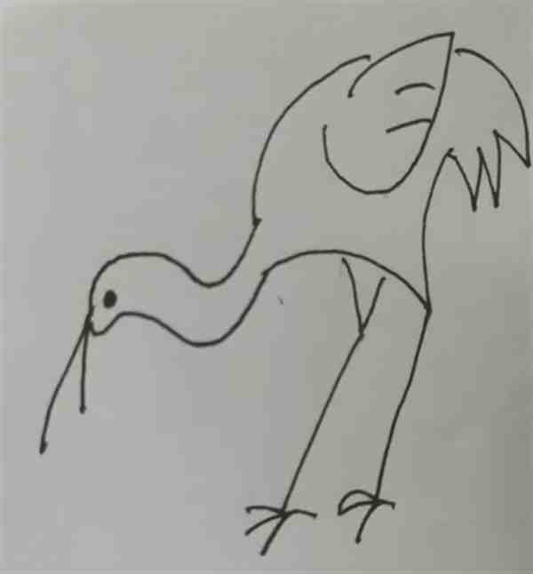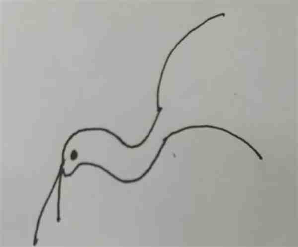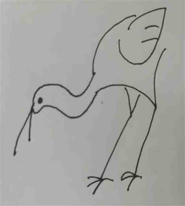 2.接着继续画出简笔画白鹭的尖尖的小嘴巴。
