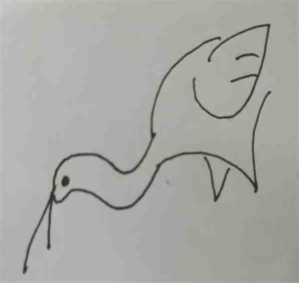 4.接着继续画出简笔画白鹭的一只小翅膀。