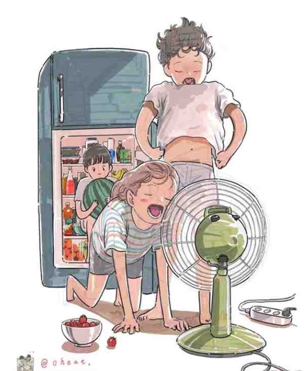 韩国插画师oheat01笔下的童年暑假生活,温馨治愈!